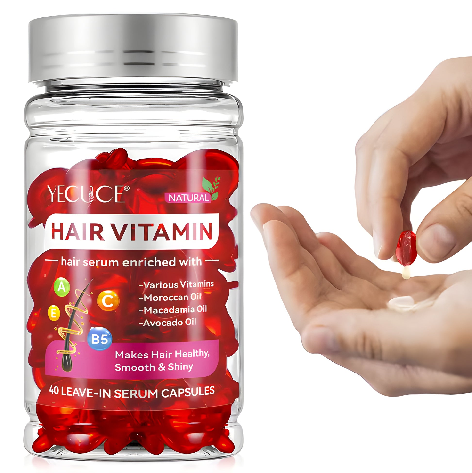 Descoperă secretul unui păr sănătos și radiant cu Hair Vitamin Serum Moroccan Macadamia Avocado Oil Capsules – luxul pur al naturii, concentrat într-o singură picătură.